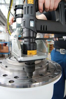 Die 20 Schrauben werden gesteuert auf 220 Nm angezogen. Zusätzlich wird der Drehwinkel elektronisch überwacht.(Bild: Atlas Copco Tools)