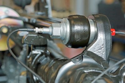 Ultraschallmessung an einer Achsverschraubung: Atlas-Copco-Mitarbeiter haben mit ihrem Ultraschallgerät Reibwerte und Vorspannkräfte an Prototypteilen von Gigant gemessen und nach der Analyse der Daten die Anzugsvorgaben der Konstrukteure noch verbessert. (Bild: Atlas Copco Tools)