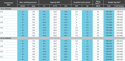 H σειρά G 2-7 λειτουργεί στα 61-67 dB, γεγονός που το καθιστά ένα ασφαλή και εύχρηστο εξοπλισμό. Δεν απαιτείται ηχομόνωση ή ξεχωριστός χώρος για τον αεροσυμπιεστή.