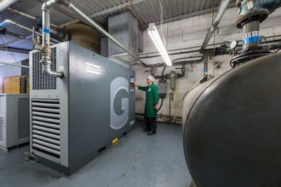 The recommendation was to install a 90 kW Atlas Copco GA90 VSD rotary screw compressor with air quality ancillaries. As the lead unit, this would match the variable production air demand in the region of 39-293 l/s and cope easily with the existing and anticipated demand. In practice, the company’s existing fixed-speed compressor was retained as back up and together with its dryer, receiver, oil water separator and pipework was re-sited from its warehouse location to the main compressor room to accompany the new GA VSD unit.
