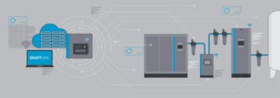 - How to connect compressed air stations from Atlas Copco and other different brands in your factory and their benefits