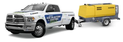 A virtual dust free application site when abrasive blasting? Thanks to Graco’s EcoQuip2 unit teamed up with an Atlas Copco mobile compressor, you can experience up to 92% dust reduction; allowing you to work faster, cleaner and greener.