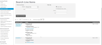 - Navigate to either Order History or Search Line Items to refer to previous orders and verify that you have licenses available.