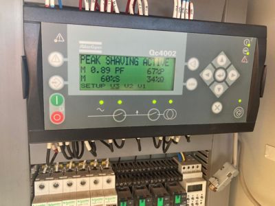 Además, la empresa no necesitaba dejar el generador en funcionamiento de forma permanente. Solo se activaba cuando la temperatura era más alta y la demanda del chiller excedía la capacidad de la subestación, o ingresaba a un rango de tarifa más alto. En Chile, como en muchos países, el precio de la energía varía en las bandas de tarifas y la solución Atlas Copco Rental ayudó a RR Wine a mantener el consumo de la red pública dentro de las bandas de menor costo. Esta estrategia se conoce como "Peak Shaving". Un controlador inteligente Atlas Copco modelo Qc 4003 ayudó a programar horarios automáticamente.