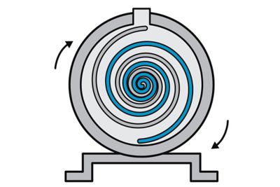 Los compresores scroll constan de dos elementos scroll en forma de espiral que están atornillados juntos: una espiral fija y una espiral móvil accionada por un motor. El proceso de compresión de aire en un compresor scroll consta de varios pasos: