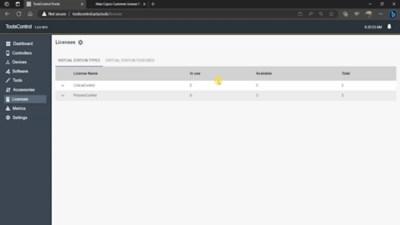 - Tarkista Licenses (Lisenssit) -välilehdestä, että lisälisenssit löytyvät ToolsControlista.