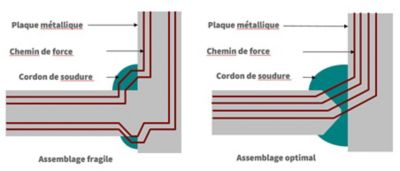 Lors de l'assemblage de différents composants métalliques, il est nécessaire de chanfreiner les bords. De cette façon, lorsque les pièces sont soudées ensemble, le trajet de la force à travers la soudure est linéaire. Cela garantit un assemblage plus solide et plus sûr.