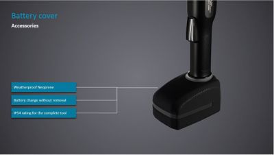 Il coperchio accessorio della batteria è realizzato in neoprene resistente alle intemperie e consente di cambiare la batteria attraverso la cerniera, senza la necessità di rimuoverlo.