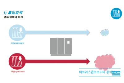 컴프레셔 룸 환경은 유량에 많은 영향을 끼칩니다. 환경에 따라 컴프레셔 흡입구의 상태가 달라지기 때문입니다. 컴프레셔의 흡입 압력, 온도, 습도의 조건은 컴프레셔를 구매하기 전, 확인해봐야 할 매우 중요한 조건입니다.