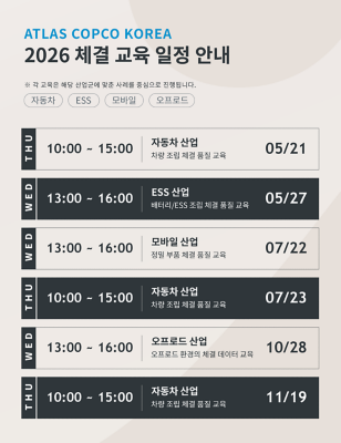 아트라스콥코 코리아에서 진행하는 체결교육의 주요 커리큘럼을 확인하세요.