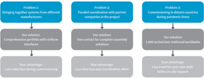Our hardware and software solutions are always seamless, which is why you have fewer interfaces and commissioning costs are significantly reduced. And, should you need on-site support, our 1,800 service technicians located throughout the world are pleased to assist you even if the mobility of your own personnel is limited as a result of the current travel restrictions.