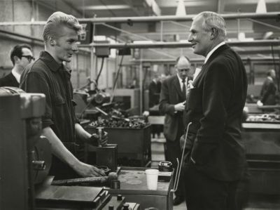 Маркус Валленберг знакомится с сотрудником «Атлас Копко» во время открытия новых мастреских в Сикле, 1961.
