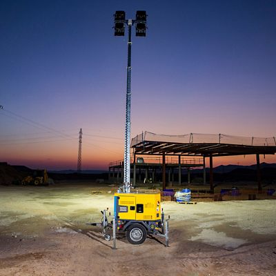 Гидравлический механизм поднятия мачты Благодаря гидравлическому механизму поднять мачту с лампами на высоту до 8 метров не составит труда. Светодиодные лампы мощностью по 350 Вт с возможностью независимой регулировки положения и управления каждой позволяют оптимально настроить освещение на вашем объекте площадью до 5000 кв.м.
