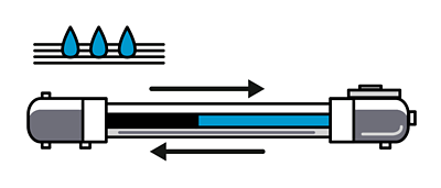 3. เครื่องทำลมแห้งชนิดเมมเบรน (Membrane drying) เครื่องทำลมแห้งชนิดนี้จะมีขนาดไม่ใหญ่นัก เหมาะกับการใช้งานเฉพาะจุดที่ค่อนข้างซีเรียสเรื่องความชื้น (Critical Point of Use) เครื่องทำลมแห้งแบบ Membrane สามารถทำ Dew Point ได้สูงถึง -40 °C (PDP) ไม่มีการใช้ไฟฟ้า ทำให้ไม่สิ้นเปลืองพลังงาน เนื่องจากลมอัดที่มีความชื้นจะผ่านเส้นใยไฟเบอร์ (Bundle of Hollow fiber) โดยผนังของเส้นใยไฟเบอร์นี้ ถูกออกแบบพิเศษให้สามารถดักจับไอน้ำ (water vapor) ในลมอัดได้ เพื่อที่จะคลายความชื้นออกจากผนังของเส้นใยไฟเบอร์นี้ ลมอัดที่แห้งส่วนหนึ่ง จะถูกนำมาดึงความชื้นออกจากผนังเส้นใยไฟเบอร์นี้ทางด้านนอกของท่อเส้นใยไฟเบอร์ และระบายออกสู่บรรยากาศ