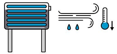 1. เครื่องแยกน้ำพร้อมระบายความร้อน (Cooling plus separation) ดูเหมือนจะเป็นวิธีที่เข้าท่า เนื่องจากอากาศอัดที่ร้อนจัดจะถูกระบายความร้อนออกทำให้เย็นตัวลง ซึ่งช่วยให้น้ำจำนวนมากกลั่นตัวเป็นหยดน้ำ เมื่อน้ำกลั่นตัวแล้วก็สามารถแยกน้ำออกจากอากาศได้ โดยทั่วไปแล้วจะติดตั้งคู่กับเครื่องระบายความร้อนหรืออาฟเตอร์คูลเลอร์