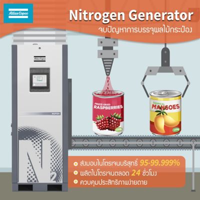 การลงทุนในเครื่องผลิตไนโตรเจนเมื่อมองในระยะยาวแล้วสามารถช่วยให้โรงงานลดต้นทุน เพิ่มประสิทธิภาพให้แก่กระบวนการผลิต และจบปัญหาการขาดแคลนไนโตรเจนซึ่งทำให้กระบวนการบรรจุมีปัญหาและอาจส่งผลแก่ผลิตภัณฑ์ภายใน เมื่อเปรียบเทียบกับการใช้ถังก๊าซไนโตรเจนแล้ว คุณภาพที่ได้ถือว่าคุ้มค่ามากกว่า สำหรับท่านใดที่กำลังมองหาเครื่องผลิตก๊าซไนโตรเจนจาก Atlas Copco เพื่อใช้ในโรงงานผลิตผลไม้กระป๋อง สามารถสอบถามรายละเอียดเพิ่มเติมจากผู้เชี่ยวชาญของเราหรือสั่งซื้อผ่านแบบฟอร์มด้านล่างได้เลย