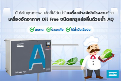 เพิ่มความมั่นใจ ไร้สารปนเปื้อนในคุณภาพลมอัดด้วย เครื่องอัดอากาศ Oil Free ชนิดสกรูหล่อลื่นด้วยน้ำ AQ จาก Atlas Copco
