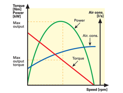 Bir uygulama için havalı motor seçerken ilk adım, "çalışma noktasını" tespit etmektir. Bu değer, motordan beklenen çalışma devri ve bu noktada gereken tork değerine bağlıdır.