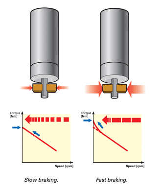 - Durma torku, motorun durdurulmak üzere ne kadar hızlı frenlendiğine bağlı olarak değişir. Hızlı frenleme, yavaş frenlemeden daha yüksek durma torku sağlar. Bu, rotordan gelen kütlenin (atalet momenti) torku artırmasına bağlıdır.